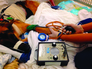 Figure 4 - Doppler blood pressure measurement technique in a dog.